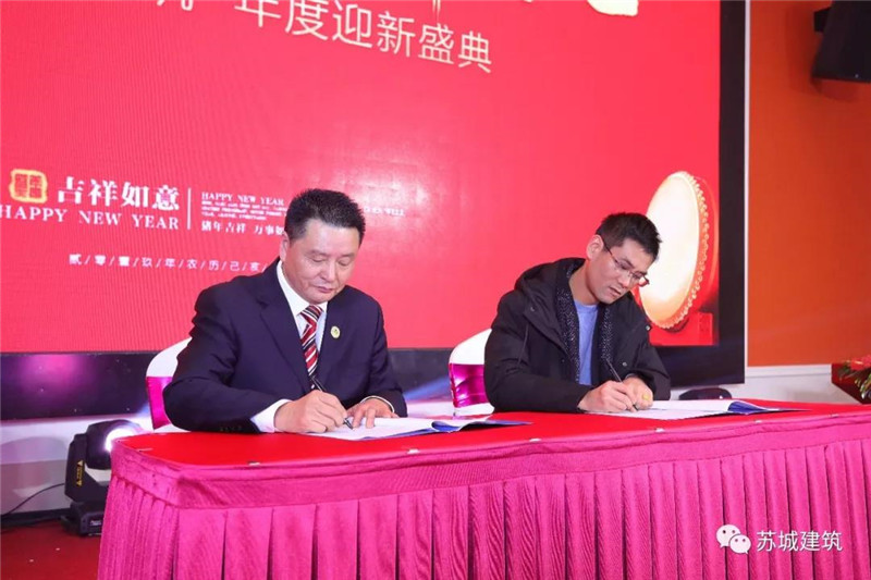 頒獎(jiǎng)典禮前,領(lǐng)導(dǎo)嘉賓陸續(xù)進(jìn)場,門口簽到留影后紛紛入座,首先由總公司陸小金總經(jīng)理做年終工作總結(jié),隨后,由五分公司總經(jīng)理潘學(xué)忠、三分公司總經(jīng)理陸林元分別進(jìn)行了年終總結(jié)。總公司與各分公司簽訂了2019年度生產(chǎn)經(jīng)營承包合同,合同明確了今年的生產(chǎn)經(jīng)營目標(biāo)和創(chuàng)優(yōu)的目標(biāo),為蘇城建筑全年目標(biāo)的實(shí)現(xiàn)打下堅(jiān)實(shí)的基礎(chǔ)。